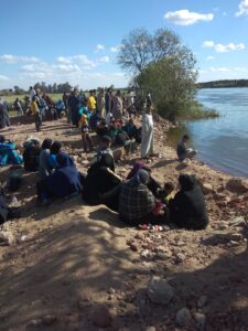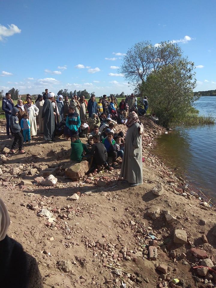 أهالى عزبة التفتيش يرابطون مع أم الطفلة شروق على شاطئ النيل في انتظار جثتها