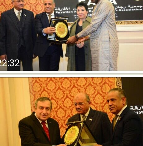 انطلقت مساء أمس فعاليات اللقاء والمؤتمر السنوي الأول لجمعية رجال الأعمال المصريين الأفارقة بالقاهرة تحت شعار ( الجمهورية الجديدة ،، نعم أفريقيا تستطيع ) وحضر اللقاء الدكتور عصام شرف رئيس مجلس وزراء مصر الأسبق ، و١٠ من سفراء الدول الأفريقية لدي جمهورية مصر العربية السفير نيورا اباريمي سفير دولة نيجيريا لدي مصر ، والسفير عمر ساندا احمد سفير دولة غانا لدي مصر ، والسفير سوربا كامارا سفير دولة غينيا ، والسفيرة كارولين موسي سفير دولة مالاوي لدي مصر ، والسفير ماجين توبالي سفير دولة زامبيا لدي مصر ، وكاتدران جوبتر هان سفير دولة موريشيوس لدي مصر ، والسفير محمد الأمين اثي القائم بأعمال سفير دولة السنغال ، والسفير صموئيل كارجابو القائم بأعمال سفير دولة سيراليون ، كما شارك بالحفل يحيي الواثق بالله رئيس قطاع التمثيل التجاري بجمهورية مصر العربية ونائبا عن وزيرة التجارة والصناعة ، والنائب محمد صلاح أبو هميلة رئيس الكتلة البرلمانية لحزب الشعب الجمهوري بالبرلمان ، والنائب مصطفي بكري الكاتب الصحفي ، والسفيرة سها الجندي مساعد وزير الخارجية للمنظمات والتجمعات الأفريقية ، ود سهير منتصر استاذ القانون المدني ورئيس لجنة التعليم والبحث العلمي والتدريب بالجمعية ،ود اسلام ابو المجد مساعد وزير التعليم العالي للشئون الإفريقية ، والسفير محمد قدح نائب مساعد وزير الخارجية للمنظمات والتجمعات الأفريقية ، ود عادل بلال نائب رئيس الأكاديمية العربية للعلوم والتكنولوجيا والنقل البحري لشؤون التعليم نائبا عن رئيس الأكاديمية,