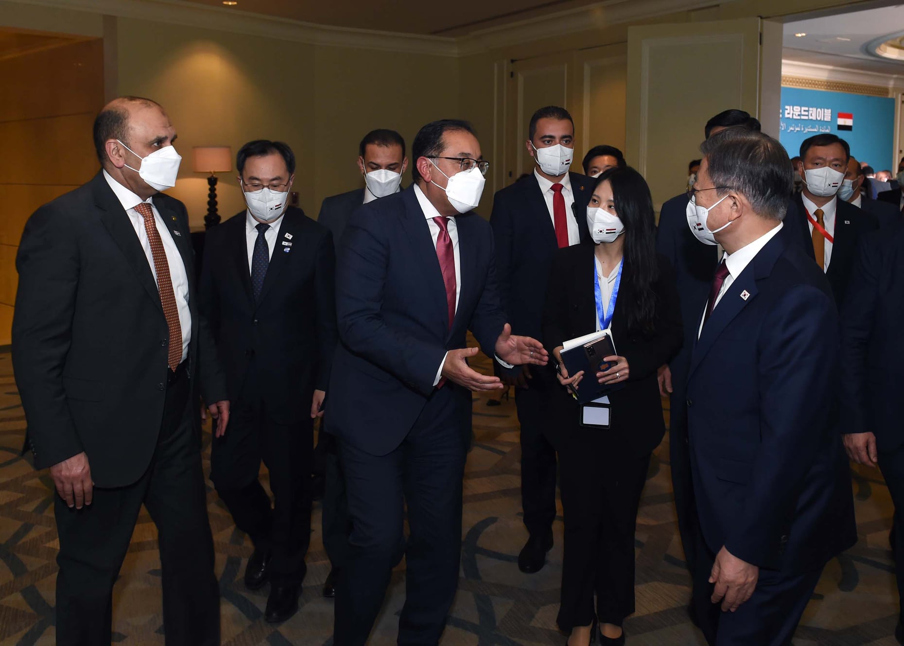 وأضاف رئيس الوزراء أن العلاقات الاقتصادية بين البلدين شهدت تطوراً ملحوظاً خلال الفترة الماضية انعكس على مؤشرات أداء التجارة والاستثمار المشترك؛ موضحاً أنه منذ يناير 2021 وحتى نهاية نوفمبر الماضي، ارتفع إجمالي حجم التبادل التجاري بين البلدين بنسبة 53.5% ليبلغ 2.2 مليار دولار، كما بلغت القيمة التراكمية للاستثمارات الكورية في مصر أكثر من ٧٠٠ مليون دولار، متمثلة في 181 مشروعاً في مختلف المجالات، خاصة في المنتجات الإلكترونية، وتكنولوجيا المعلومات، وصناعة النسيج، وقطع غيار السيارات، والمواد الكيماوية، ومواد البناء، والطاقة المتجددة، والبناء والتشييد، والشحن والنقل، مضيفاً أن هذه الاستثمارات تستفيد من السوق المصرية الواسعة والتي تضم ما يزيد على 100 مليون مستهلك، إضافة إلى المزايا التجارية المتاحة لنفاذ منتجاتها إلى التكتلات الاقتصادية، التي تربطها بمصر اتفاقيات تجارة تفضيلية؛ سواء الاتحاد الأوروبي، أو المنطقة العربية، أو الدول الأفريقية، ولافتاً إلى تطلع مصر إلى مزيد من الاستثمارات الكورية خلال الفترة القادمة.