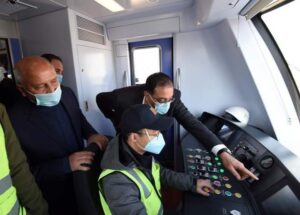 واستقل رئيس الوزراء ووزير النقل أحد القطارات، الذي يتم تشغيله تجريبيًا من محطة الشروق حتى محطة بدر؛ للاطمئنان على سير عملية التشغيل التجريبي للمشروع، كما تم الاطلاع خلال الجولة من مسئولي شركة “أفيك” الصينية، على جاهزية الأعمال الكهروميكانيكية، والتحكم ونظم الإشارات، والقوى الكهربائية والإشارات والاتصالات، للافتتاح خلال الموعد المحدد كما تفقد الدكتور مصطفى مدبولي ومرافقوه محطات المشروع، بدءاً من محطة عدلي منصور المركزية التبادلية، التي ستضم مجمع نقل متكامل الخدمات، ومنطقة تجارية استثمارية، على مساحة 15 فدانا، ليتم تبادل الخدمة بين خمس وسائل نقل مختلفة؛ تشمل محطة لمترو الخط الثالث (تم افتتاحها وتشغيلها)، ومحطة للقطار الكهربائي الخفيف LRT، ومحطة للسكك الحديدية “القاهرة – السويس”، ومحطة للسوبرجيت، بالإضافة إلى الأتوبيس الترددي (عدلي منصور – السلام).