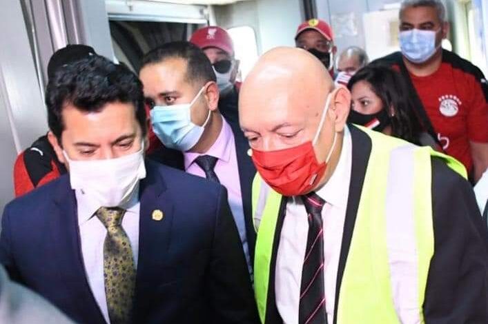 واطمأن وزير الشباب والرياضة على كافة الترتيبات المتعلقة ببعثة المنتخب الوطنى استعداداً للمباراة، واجراءات استقبال الجماهير المصرية وتوجهها إلى استاد المباراة، وعودتها إلى المطار عقب انتهاء المباراة.