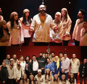 حيث تغنى وألقى مجموعة من أبطال العرضين المسرحيين “قهوة سادة وسلم نفسك” نجوم الدفعة الثانية والثالثة من استوديو مسرح الإبداع الفني، بحب النبى محمد (ﷺ) وصفاته وسيرته العطرة فى “البردة للإمام البوصيري”، ونال العرض إعجاب السادة الحضور، الذين عاشوا لمدة ٤٠ دقيقة فى جو من الروحانيات وصفاء النفس، وحرص عدد كبير من الجمهور بتقديم الشكر والتحية لأبطال العمل وللمخرج خالد جلال .