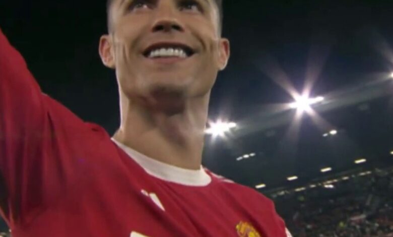 حبس النجم البرتغالي كريستيانو رونالدو دموعه وهو يلوح بالتحية للجماهير مبتسما عقب نهاية مباراة فريقه مانشستر يونايتد أمام برينتفورد بالدوري الإنجليزي الممتاز، مساء أمس الاثنين.