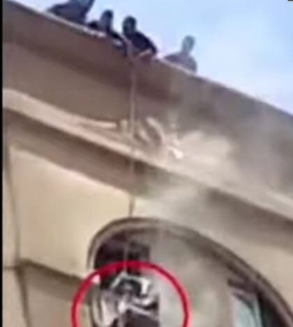 ويظهر الفيديو المرفق محاولة مجموعة من الجيران إنقاذهم باستخدام حبال من اعلي المبني وتم إنقاذ الزوجة وابن شقيقه ولكن الكابتن خالد وأبنه وسقطا أرضا وتوفاهم الله وابنته توفاها الله بالاختناق رحمه الله الجميع برحمته الواسعة .