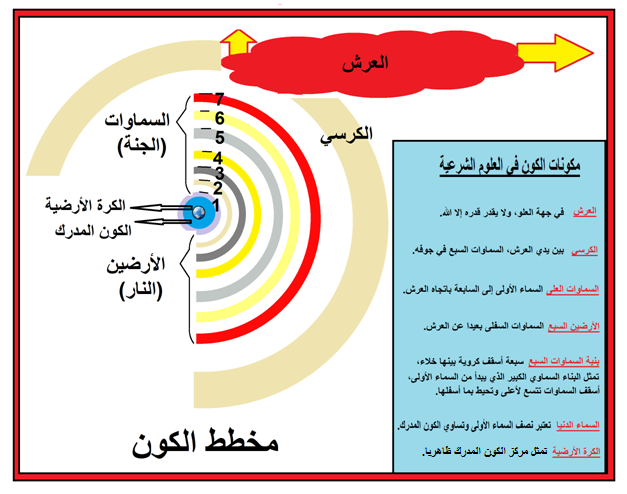 شكل رقم (1) مخطط مقترح للكون بمعناه الواسع في العلوم الشرعية، مع وصف موجز لمكونات الكون.