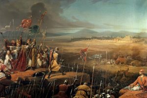 قاد صلاح الدين حملة لا تبقي ولا تذر فكسر شوكت الصلبيين وكان شعار الجيش التكبير والتحميد والتهليل وكان زادهم التقوى والدعاء وقيام الليل فكان يمر على خيمة الجند باليل بعد ان اتعبهم الجهد في التدريب والقتال فاذا رأى خيمة نائمة قال من هنا تأتى الهزيمة واذا رأى الخيمة بها الجند يقومون الليل ويقرأون القرأن قال منها يـأتى النصر .