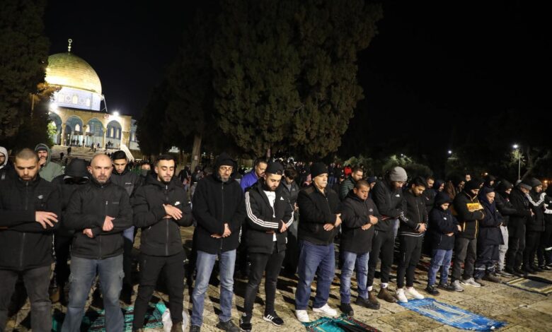35 ألفًا يؤدون صلاتي العشاء والتراويح بالمسجد الأقصى في تاسع ليالي رمضان