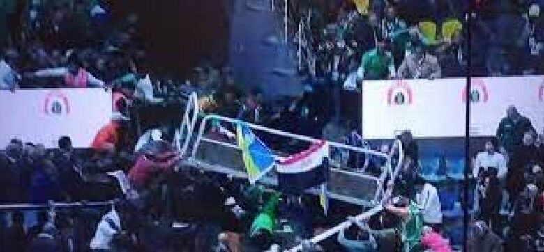 9 مصابين في حادث سقوط السور الحديدى للمدرج أثناء مباراة سلة الأهلي والإتحاد