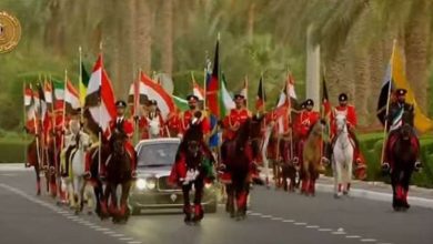 الرئيس السيسي يصل إلى قصر بيان ترافقه فرقة الخيالة الكويتية