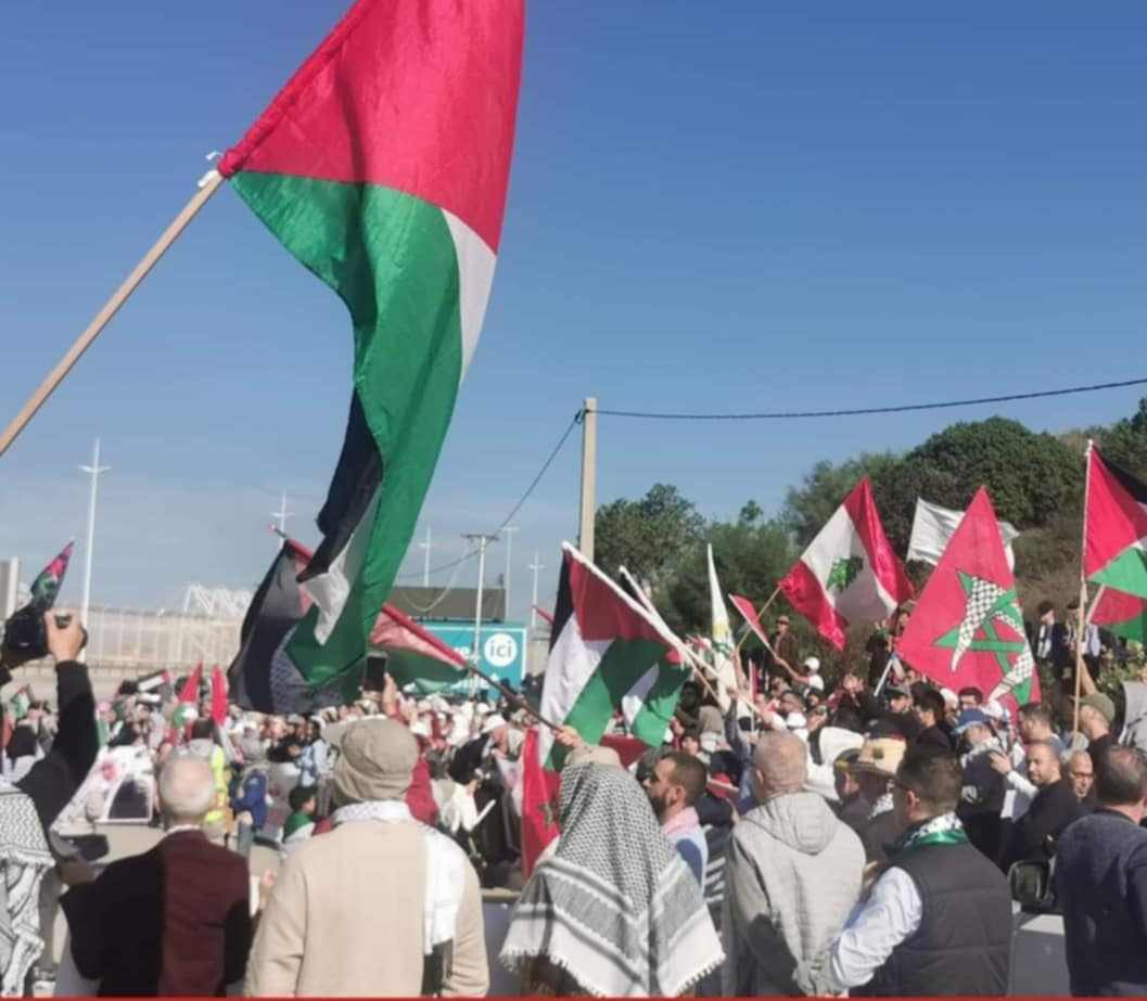 المغاربة يتظاهرون رفضا لاستقبال سفينة امريكية تنقل معدات عسكرية لجيش الاحتـ.ـلال
