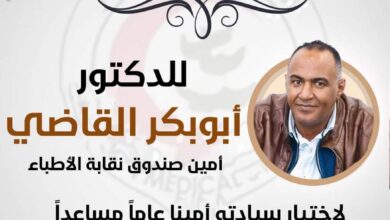 كتبت -عبير علي تتقدم النقابة العامة لأطباء مصر ..بخالص التهنئة الى الدكتور أبو بكر القاضي امين صندوق النقابة العامة للأطباء…