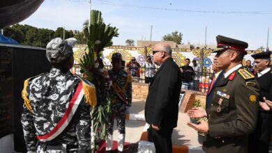 محافظ أسيوط يشارك في وضع إكليل الزهور على النصب التذكاري للشهداء