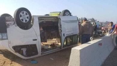 اصابة ١٣ شخصا فى حادث انقلاب سيارة ميكروباص بطريق أسيوط الجديدة