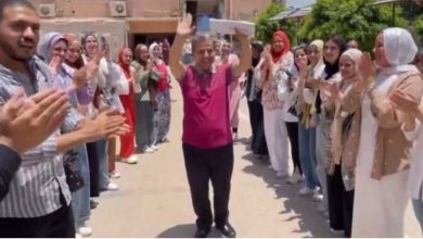 طلاب نوعية بنها يحتفلون بنهاية الامتحانات بـ ” ممر شرفى ” لرئيس قسم الاعلام التربوي بالكليه