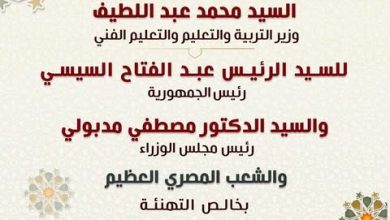 كتب – حسام فاروق تقدم السيد محمد عبد اللطيف، وزير التربية والتعليم والتعليم الفني، بالنيابة عن كافة العاملين في الوزارة،…