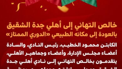 الأهلي المصري يهنئ أهلي جدة بالعودة للدوري السعودي الممتاز