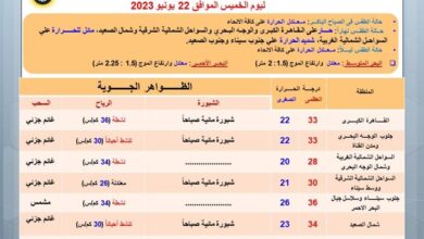 الظواهر الجوية المتوقعة في مصر غدا الخميس 22 يونيو
