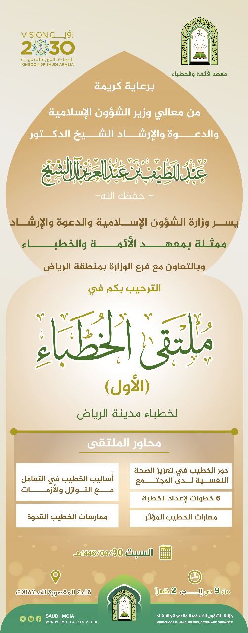 الشؤون الإسلامية تنظم ملتقى “الخطباء الأول” بمدينة الرياض