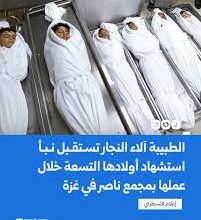 فجيعة الطبيبة الفلسطينية آلاء النجار.. صدمت بجثامين أبنائها الـ 9 متفحمة في قصف إسرائيلي