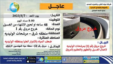 أسيوط/محمد عبدالراضى تعلن شركة مياه الشرب والصرف الصحي بأسيوط والوادي الجديد عن ضعف المياه بالأدوار العليا بمنطقة الوليدية مساء اليوم…