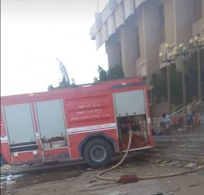 إخماد حريق في المجلس الوطني بأم درمان بعد استهدافه من المليشيات المتمردة