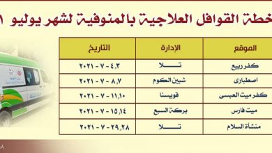 كتبت إيمان البلطى أعلن اللواء إبراهيم أحمد أبو ليمون محافظ المنوفية عن بدء تنفيذ خطة القوافل الطبية العلاجية الشاملة إبتداء…