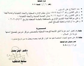 محافظ الدقهلية يوافق على تغيير اسم عزبة الدق بشربين إلى دار السلام