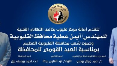 أمين “حماة الوطن” يهنئ محافظ القليوبية و جموع الشعب بالعيد القومي للمحافظة