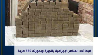 الداخلية : ضبط تاجر مخدرات بالدقي وبحوزته 53 كيلو جرام حشيش