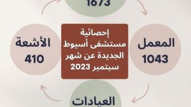 أسيوط/محمد عبدالراضى سجلت مستشفى أسيوط الجديدة بجامعة أسيوط تردد 370 مريضا على أقسام المستشفى خلال شهر سبتمبر ٢٠٢٣. وذكرت…
