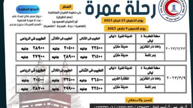 كتبت عبير علي أعلنت نقابة أطباء الإسكندرية عن تنظيم رحلتين لأداء العمرة للأطباء خلال شهري فبراير الجاري ومارس المقبل.…