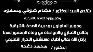 كتب – حسن ابوكباش قدم الدكتور هشام شوقي مسعود وكيل وزارة الصحة بالشرقية، واجب العزاء لأسر كل من: الدكتور محمد…