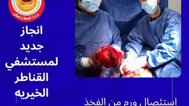 فريق جراحى ينجح فى استئصال ورم بالفخذ يزن ٢كيلو و٣٠٠ جرام بمستشفي القناطر الخيريه